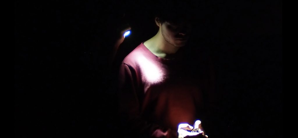 An experimental sound, video and performative creation from Julie Faubert that unfolds from the very specific context of the Cinéma moderne screening room in Montreal. Through sound images, live light framing and projected video sequences, the nature of the image is constantly questioned. Thanks to the interplay of quasi-synesthetic references, it is the dark room itself that is represented, activated, doubled, shifted, disturbed and even mirrored. The cinematographic Dolby Atmos sound diffusion system is used in an unusual way, to the extreme limit of its spatializing potential. Plunged into darkness, the audience experiences the many apparitions that reveal the performers’ poetic use of the space.